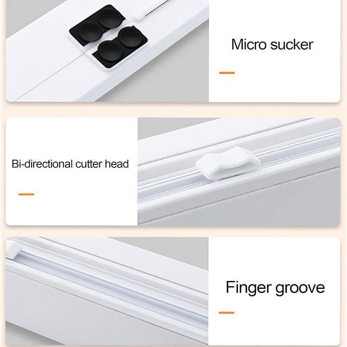 - Ventouses Antidérapantes : Des ventouses au bas de la boîte assurent une forte aspiration, permettant de tirer facilement le film alimentaire sans glisser, que ce soit dans le réfrigérateur ou au micro-ondes. 📦❄️