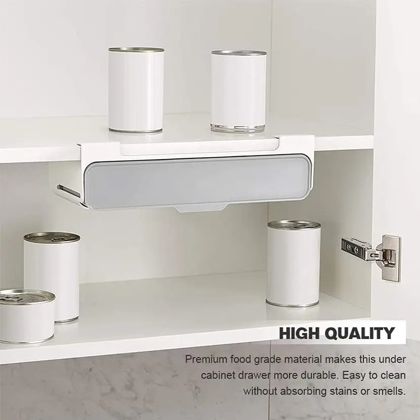 Gain de place intelligent : Se fixe sous les étagères pour exploiter l’espace inutilisé. Parfait pour les cuisines avec peu de rangement.